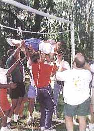 Gruppe durch ein aus Nylonschnüren oder Kordeln fabriziertes Netz